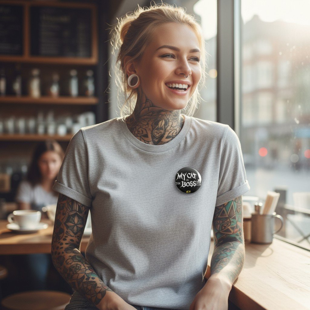 Plongez dans l’univers rebelle de Got Arts Clothing LTD avec un badge unique arborant un design de la marque – COLLECTION My Cat is the Boss — une fusion percutante entre l’énergie brute du Metal et la finesse de l’expression artistique.