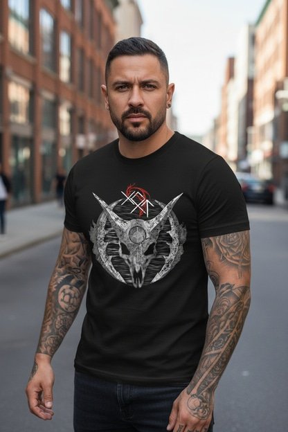 Plongez dans l’univers sombre et mystérieux avec ce  T-shirt Metal Unisexe crâne dragon gothique. En effet, cette pièce exclusive de Got Arts Clothing LTD fusionne l’esthétique dark avec des symboles ésotériques puissants. De plus, ce design audacieux en sérigraphie haute qualité représente un crâne de créature mythique. Celui-ci est orné de cornes massives et de motifs géométriques sacrés. Ainsi, vous obtenez une œuvre wearable art véritablement unique.